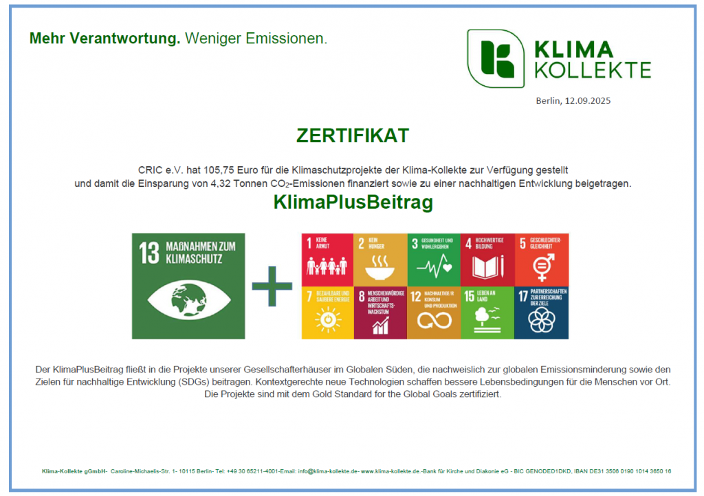 Die entstandenen THG-Emissionen kompensieren wir über unseren Partner die Klima-Kollekte gGmbH.